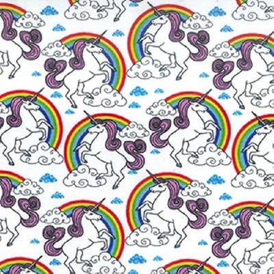 Fabric Creations White With Rainbows And Unicorns Cotton Fabric By