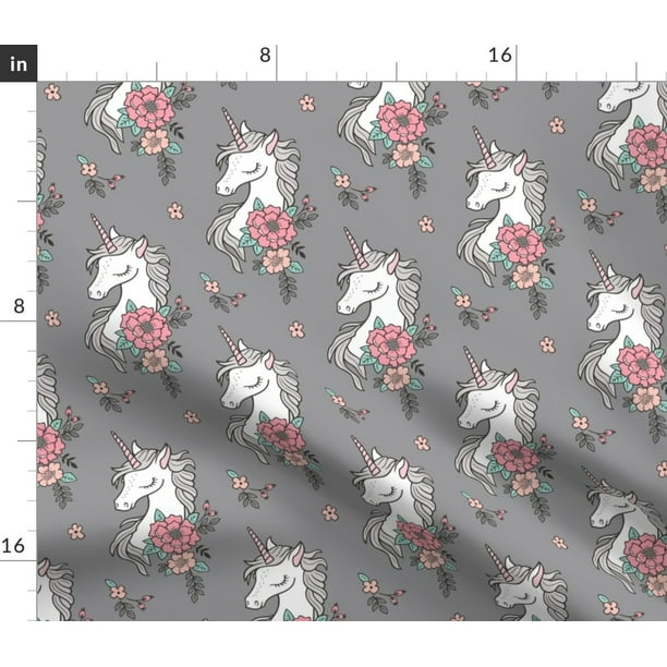 Unicorn Gray Unicorns Flowers Floral Boho Fabric Printed By