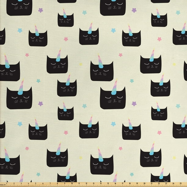 Cartoon Fabric By The Yard Nursery Pattern With Unicorn Cats With