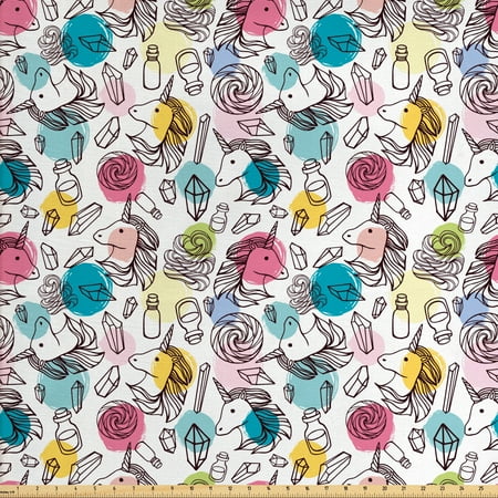 Unicorn Fabric By The Yard Magic Horse With Horn Swirl Lollipop