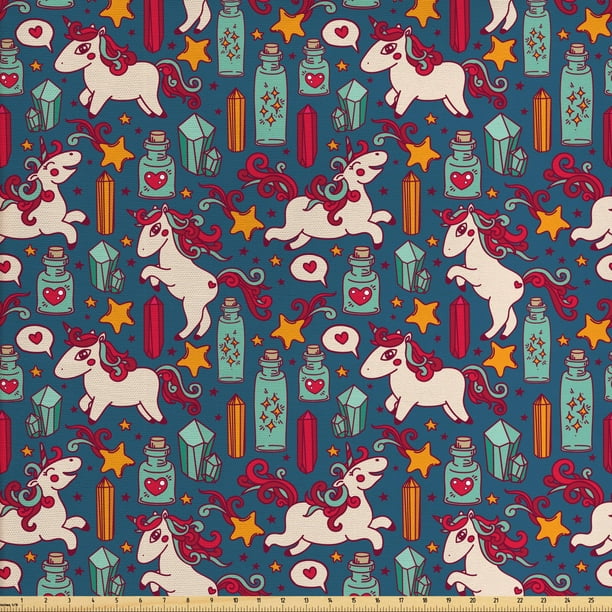 Unicorn Fabric By The Yard Colorful Mythical Animals In Cartoon