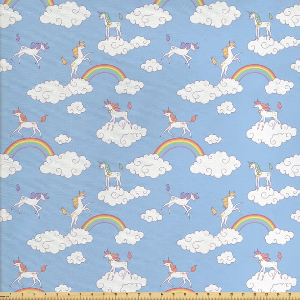 Unicorn Fabric By The Yard Dreamy Unicorns Rainbows Clouds Hot