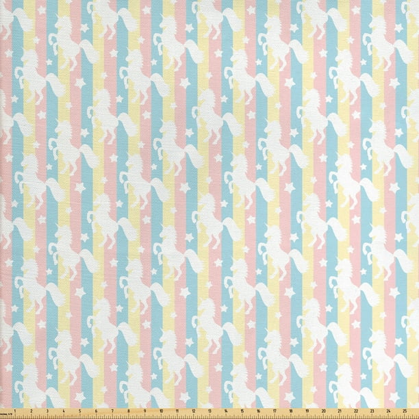 Unicorn Fabric By The Yard Pastel Colored Vertical Stripes With