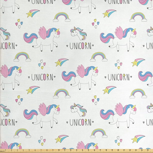 Unicorn Fabric By The Yard Kids Happiness Stars Hearts Rainbows