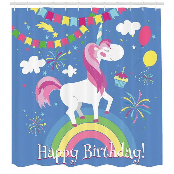 Unicorn Party Shower Curtain Happy Birthday Quote With Fairy Tale