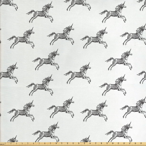 Unicorn Fabric By The Yard Minimal Sketch Style Running Fantasy