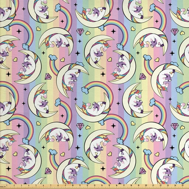 Unicorn Fabric By The Yard Magic Ideas Theme Colorful Stripes