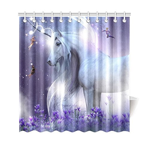 Artjia Fantasy Fairies Shower Curtain Majestic Unicorn Polyester