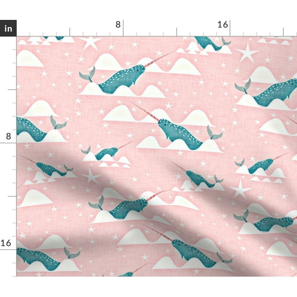Narwhal Sea Unicorn Whimsical Pink Blue Arctic Fabric Printed By