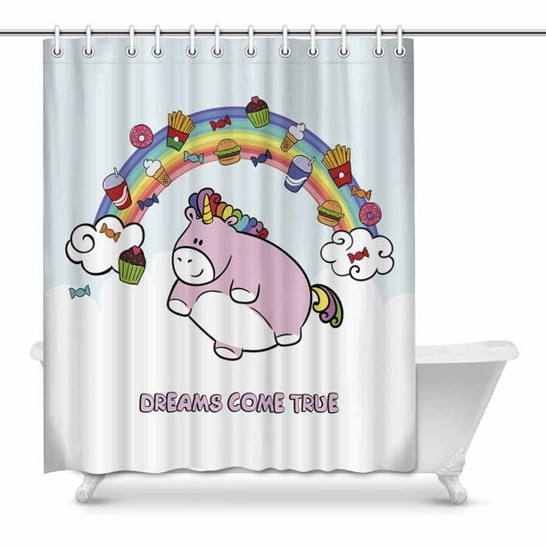 Mkhert Rainbow Pooping Unicorn Shower Curtain Bath Curtain