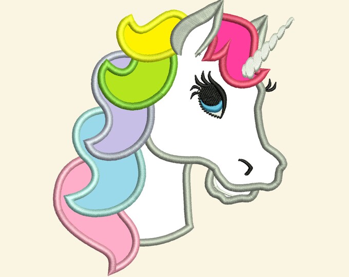 Unicorn Face Head Applique Machine Embroidery Design Embroidery