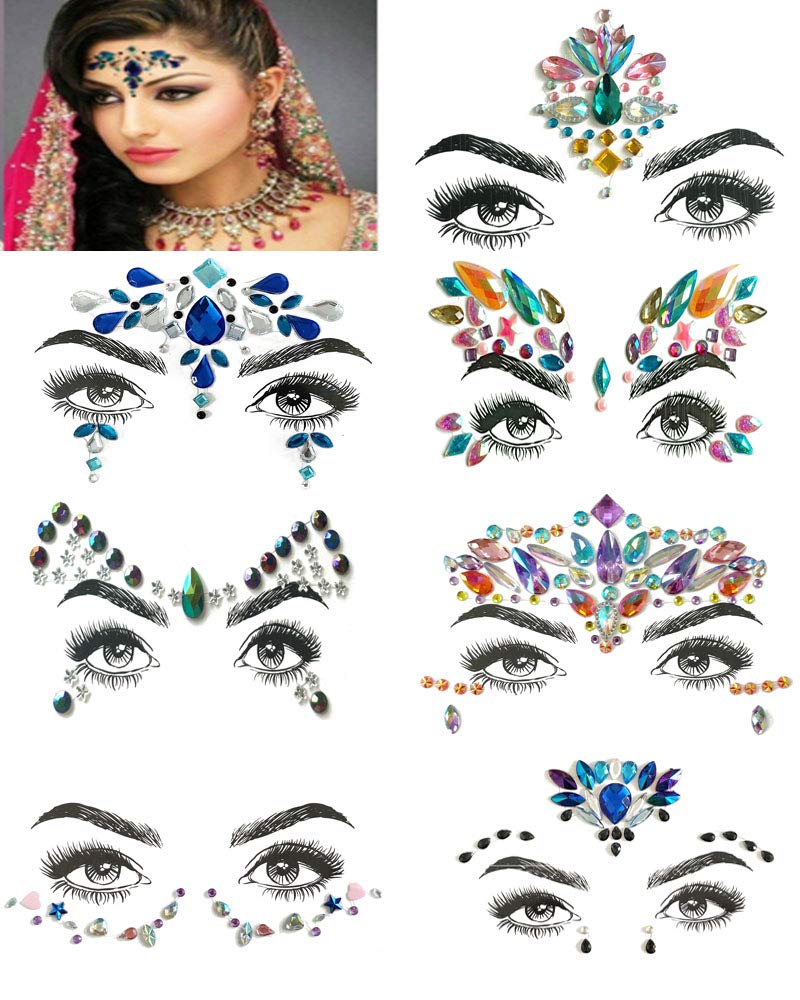 Face Gems Set 8pack Konsait Face Jewels Rhinestone Bindis Crystal
