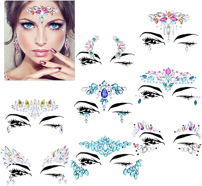Amazon Com Face Gems 7 Sets Face Jewels Temporary Tattoo