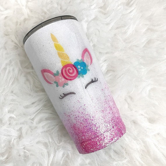 Unicorn Face Glitter Stainless Steel Tumbler Glitter Tumbler Etsy