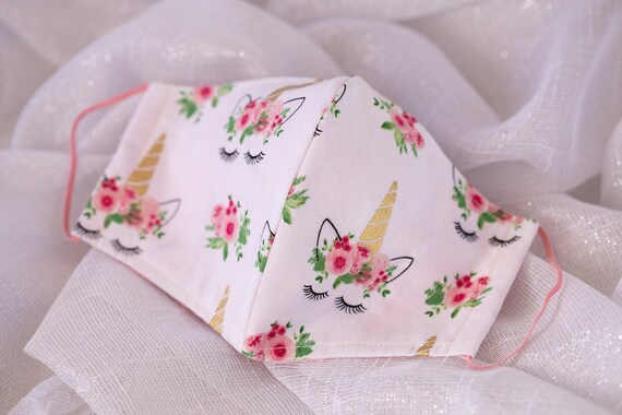 Unicorn Face Mask For Children Girls Triple Lay Folksy