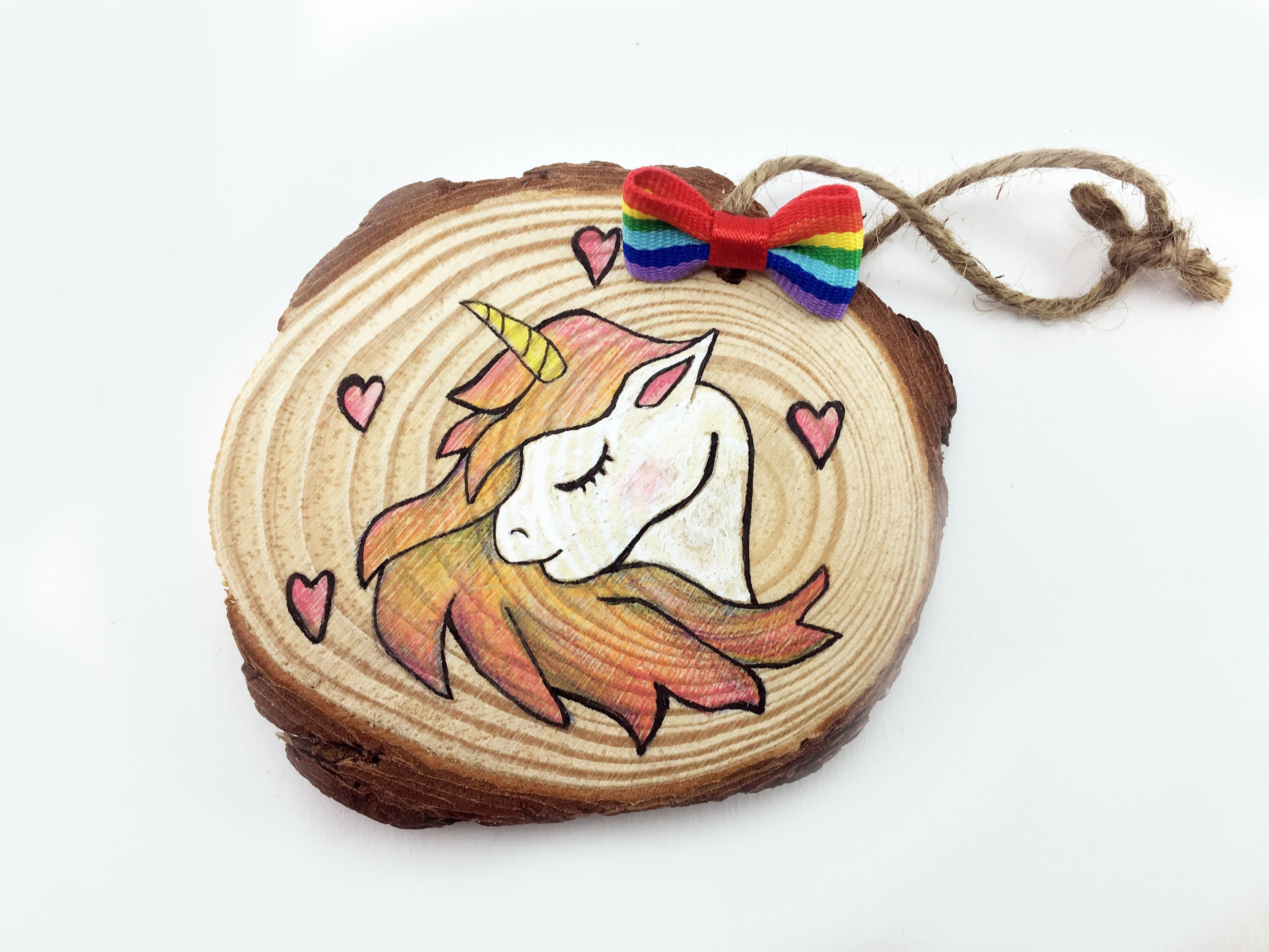 Unicorn Ornament Unicorn Face Christmas Ornament Wood Slice Etsy