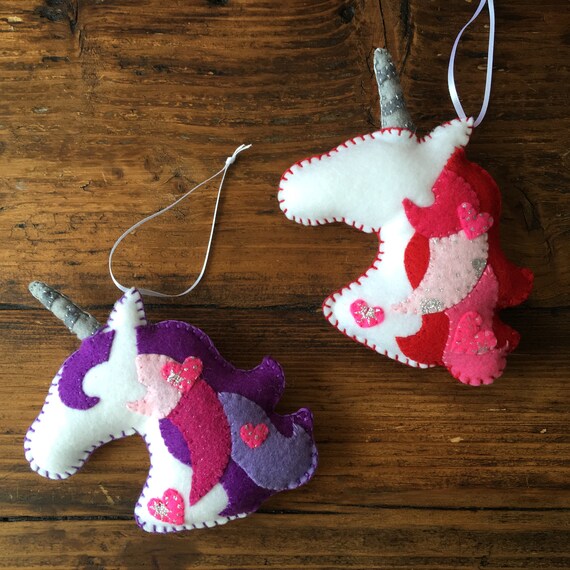 Valentine S Unicorn Handmade Felt Decoration In Red Or Etsy