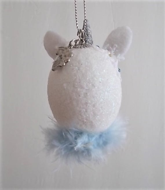Unicorn Face Egg Shell Ornament With Rainbow Charm Etsy