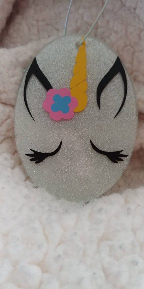 Oval Shaped Glass Ornament With Unicorn Face And Silver Etsy