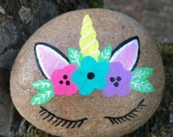Sleeping Unicorn Face Rock Robynpaintsrocks Online Store