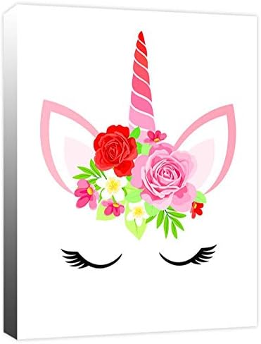 Unicorn Face With Rose Flowers Girls Childrens Canvas Wall Art