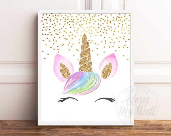 Unicorn Face Print Gold Glitter Unicorn Printable Unicorn Etsy