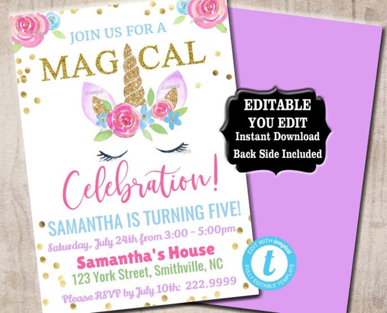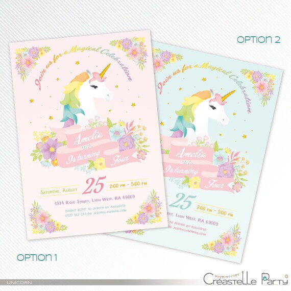 Unicorn Birthday Invitation Unicorn Invitation Unicorn Party