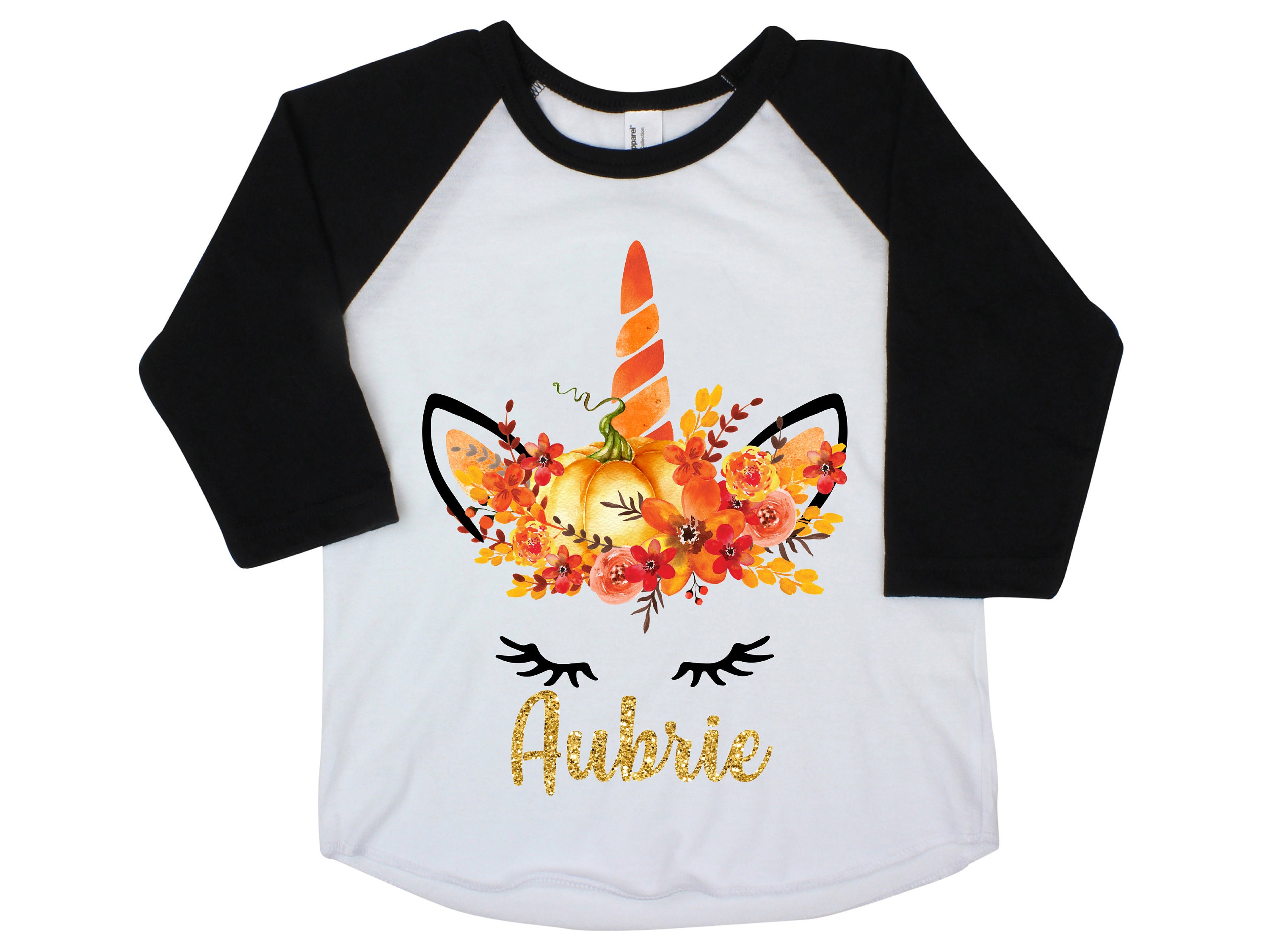 Fall Pumpkin Unicorn Face Shirt Glitter Name Personalized Etsy