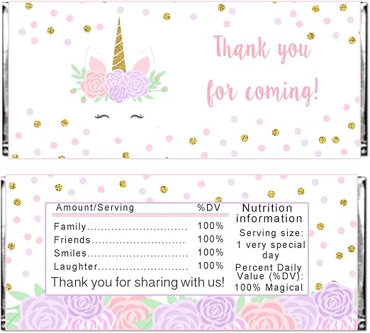 Amazon Com 30 Candy Bar Labels Unicorn Face Gold Pink Purple