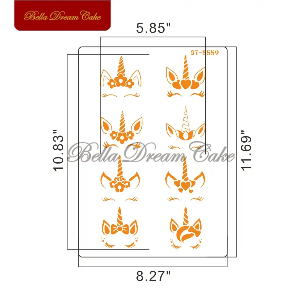 4pcs Set Unicorn Eyes Ears Cake Side Stencil Animals Stencils