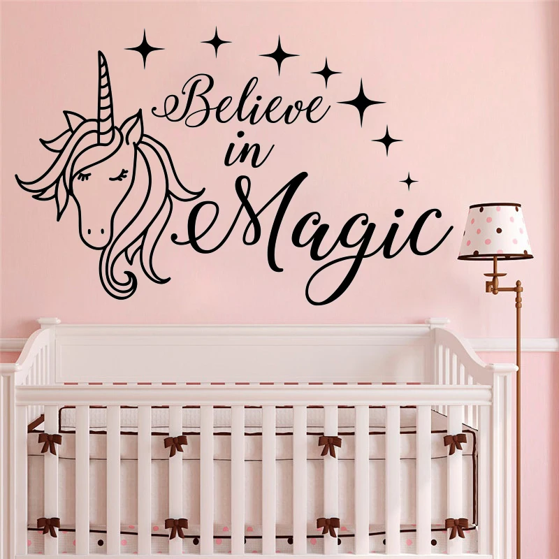 Face Unicorn Wall Stickers Quote Believe In Magic Pony Wall Art Animal Horse Vinyl Bedroom Home Decor Nursery Wall Decals Hy390 Wall Stickers Aliexpress