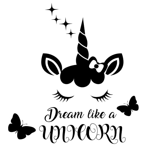 Amazon Com Quote Dream Like A Unicorn Butterfly Decal Sleep Face Unicorn Wall Decals Pony Wall Art Nursery Magic Decor Horse Vinyl Sticker Lettering For Girls