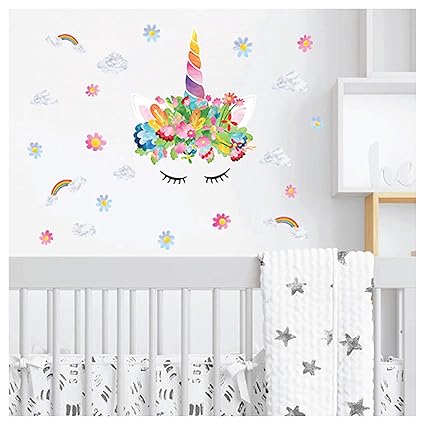 Amazon Com Colorful Unicorn Wall Decal Face Smile Unicorn Sticker With Clouds Love Star Decal Fairytale Wall Decals For Girls Bedroom Home Decor Arts Crafts Sewing