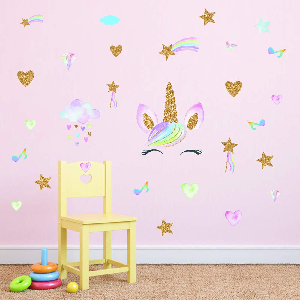 Amazon Com Beanlieve 2 Pack Unicorn Wall Stickers Removable Unicorn Wall Decals With Hearts Stars Reflective Unicorn Wall Decor Stickers For Birthday Party Kids