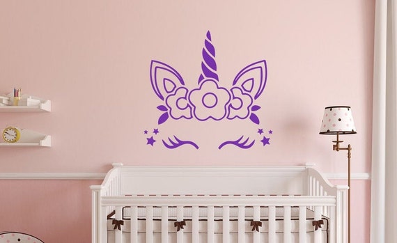 Personalised Kids Unicorn Face Wall Art Sticker Girl Bedroom Ebay