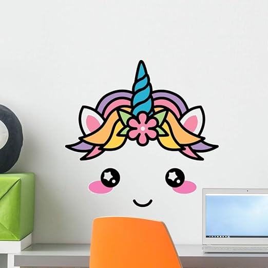 Amazon Com Wallmonkeys Kawaii Cute Unicorn Face Wall Mural Peel