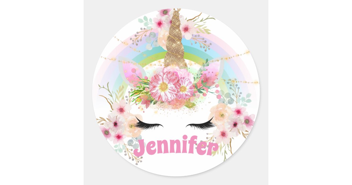 Pink Gold Glitter Unicorn Face Flowers Girls Gifts Classic Round Sticker Zazzle Com