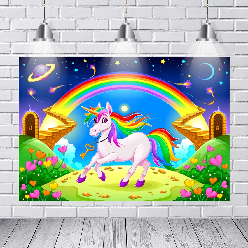 Photography Backdrops Magical Unicorn Rainbow Clouds Sky Fairy