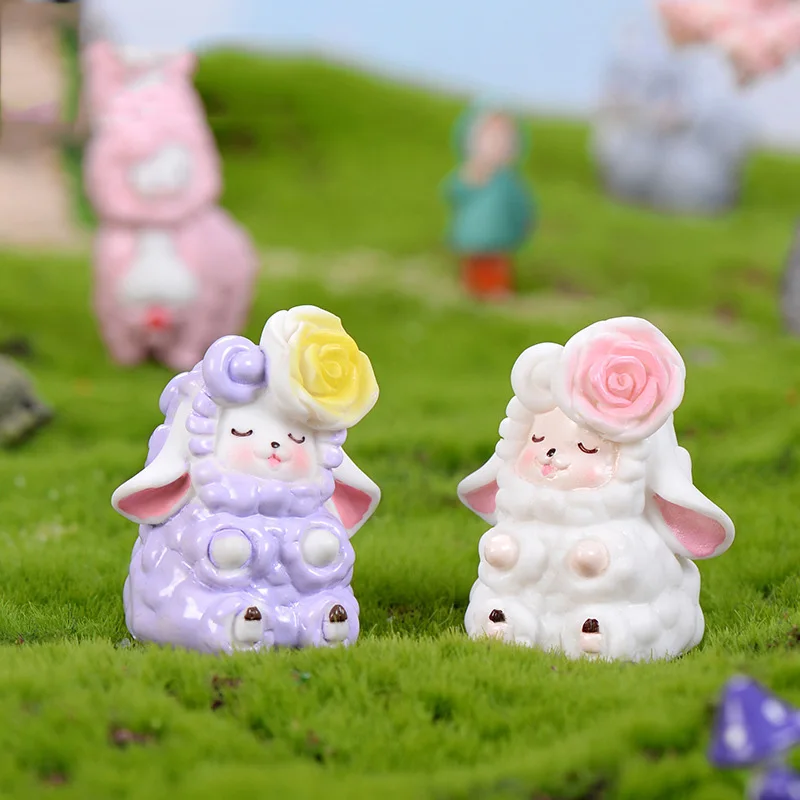 5pcs Resin Cute Unicorn Alpaca Fox Sheep Ornament For Fairy Garden