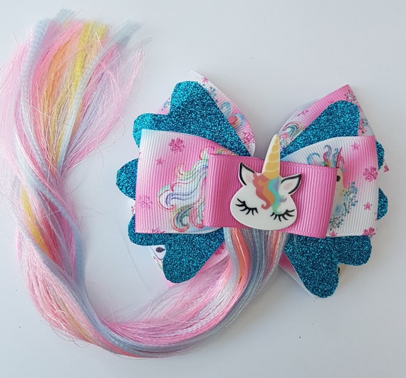 Hair Bow On Crocodile Clip Unicorn Etsy