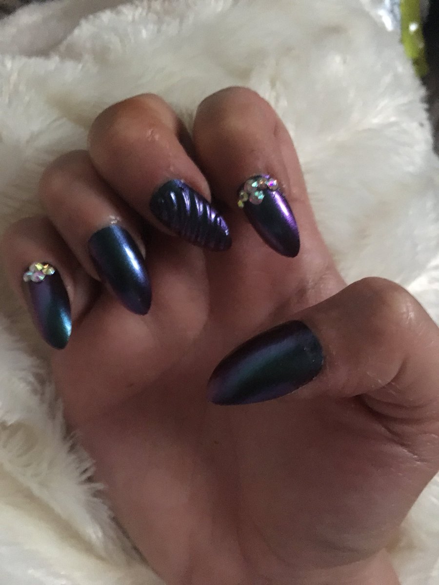 Primark False Nails Shiny 3d Jewel Almond Pointed Unicorn Ocean