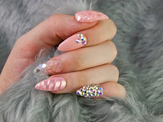 Handmade Unicorn Pastel Crystal Press On Nails Set The Nailest