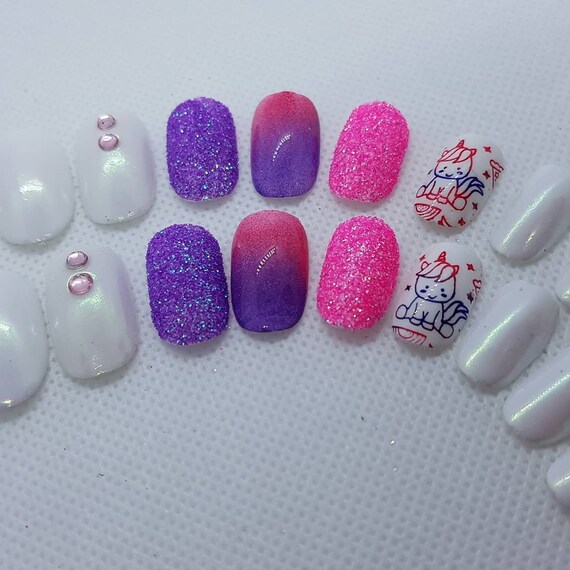 Unicorn Pink Press On Nails Cute Press On Nails Fake Nails Etsy