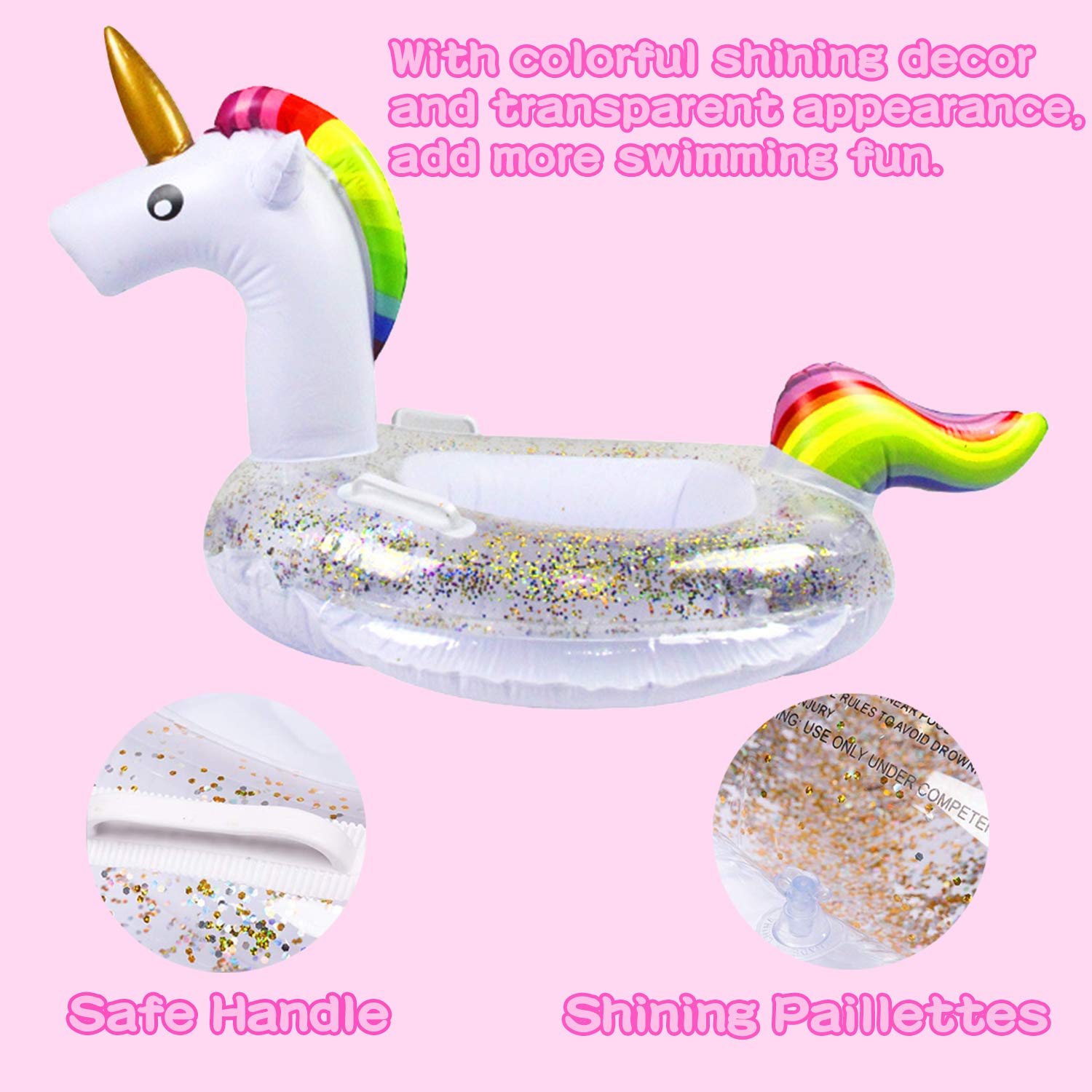 Unicorn Baby Swimming Pool Float With Canopy Glitters Seat Safety Handle 2020 Summer Baby Floats