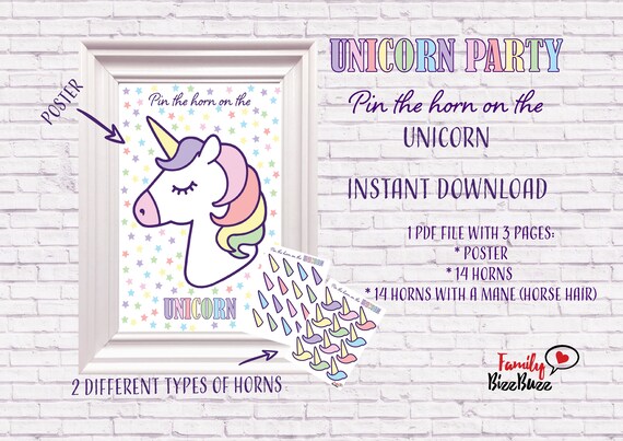 Pin The Horn On The Unicorn Game Unicorn Party Game Unicorn Etsy