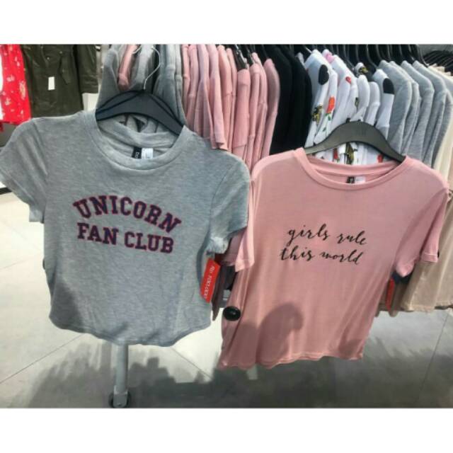 H M Basic Tee Unicorn Fan Club Fesyen Wanita Pakaian Wanita Di Carousell