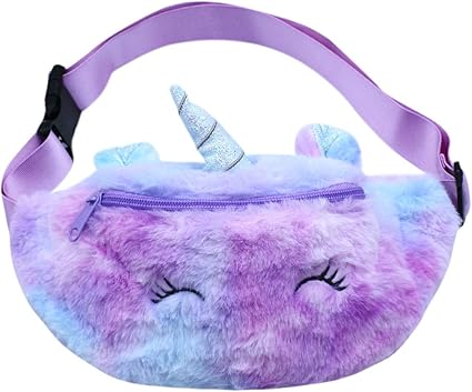 Amazon Com Yudanae Rainbow Unicorn Plush Fuzzy Fanny Pack Waist Bag Cute Bum Bag For Kids Girls Purple Unicorn Fuzzy Waist Packs