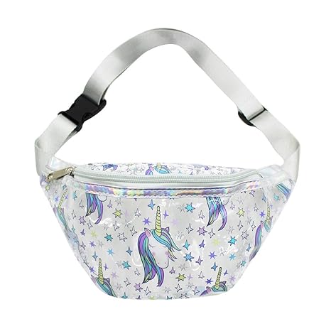 Amazon Com Girls Waist Pack Clear Holographic Fanny Pack Cute Unicorn Slim Causal Bag With Belt For Kids Teens Waist Packs