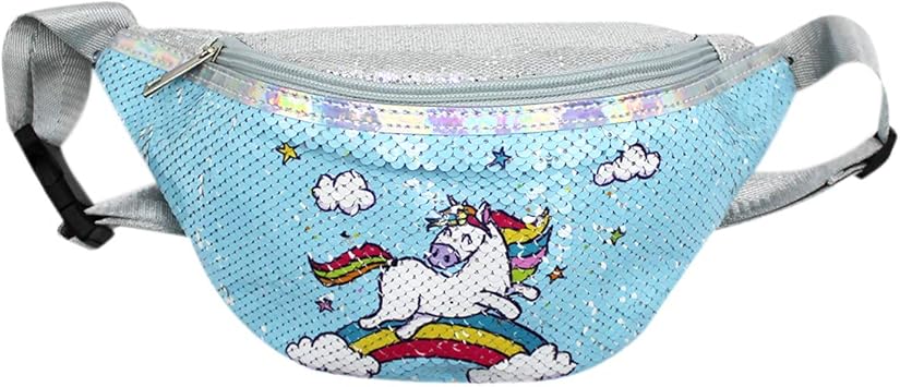 Amazon Com Fenical Fanny Pack Sequin Unicorn Chest Bag Flippy Cartoon Waist Pack Glitter Sling Daypack For Kids Girls Rainbow Waist Packs