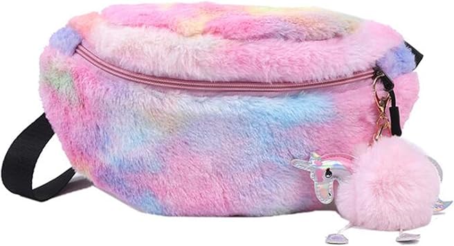 Amazon Com Women Kids Girls Plush Fluffy Fuzzy Unicorn Fanny Pack Tie Dye Rainbow Waist Pack Crossbody Purse Chest Bum Belt Bag For Hiking Travling Waist Packs